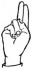 На ћирилици написано ЈЕЛИСАВ МИЛОРАДОВИЋ састоји се из 18 слова [?]. Исписано ћириличном једноручном азбуком за глувонеме: